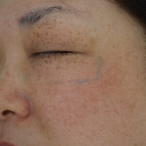 ※肝斑がある方はしみが逆に濃くなってしまうためおこなえません。(肝斑エリア外の照射は応相談)